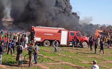 شب حريق مهول صباح يومه الأحد 16 يناير الجاري، بمستودع للصناديق البلاستيكية والخشبية داخل ضيعة فلاحية بإنزكان قرب سوق مرجان.