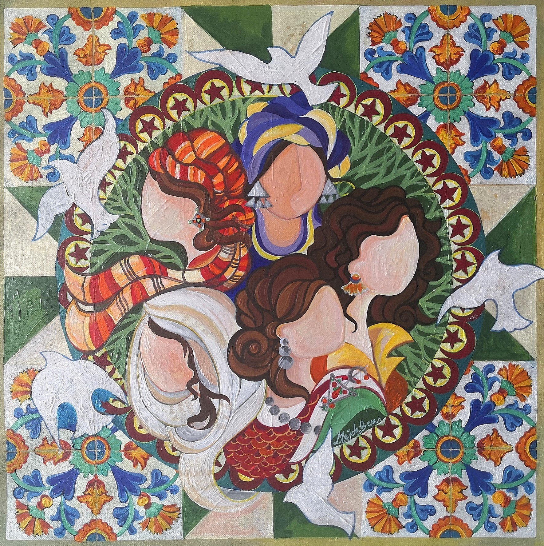 Qu’il s’agisse de peinture à l’huile, à l’acrylique ou d’aquarelle, les œuvres de Mejda Ben, qui reposent sur des motifs géométriques inspirés des arts de l’islam, montrent l’héritage identitaire de diverses influences de l’Algérie.