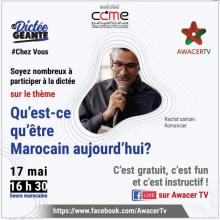 Awacer TV, qui relève du Conseil de la communauté marocaine à l’étranger (CCME), organise dimanche 17 mai 2020 à 16h30 (heure marocaine, donc 18 h 30 en France), en partenariat avec le journaliste et romancier Rachid Santaki, l’organisateur et lecteur de la plus grande dictée du monde, la Dictée Géante #chezvous, au profit des Marocains d’ici et du monde.