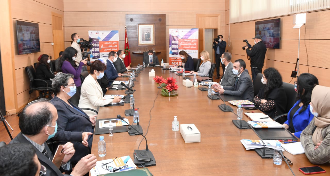 Aujourd'hui, mercredi 03 mars 2021 à Rabat, M. Saaïd Amzazi, Ministre de l’Education Nationale, de la Formation Professionnelle, de l’Enseignement Supérieur et de la Recherche Scientifique, accompagné de: la Directrice Générale de l’Agence Millennium Challenge Account-Morocco (MCA-Morocco), Mme Malika Laasri, et l’adjointe au Directeur Résident de Millennium Challenge Corporation (MCC) au Maroc, Mme Carrie Monahan, ont présidé le lancement officiel de trois nouvelles applications mobiles pour faciliter l’accès aux services du système d’information « Massar ».